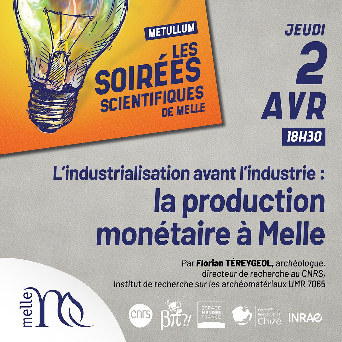 Les Soirées Scientifiques ont 10 ans ! L'industrialisation avant l'industrie - la production monétaire à melle Jeudi 2 avril 2026 à 18h30 au Metullum Par Florian Téreygeol, archéologue, directeur de...